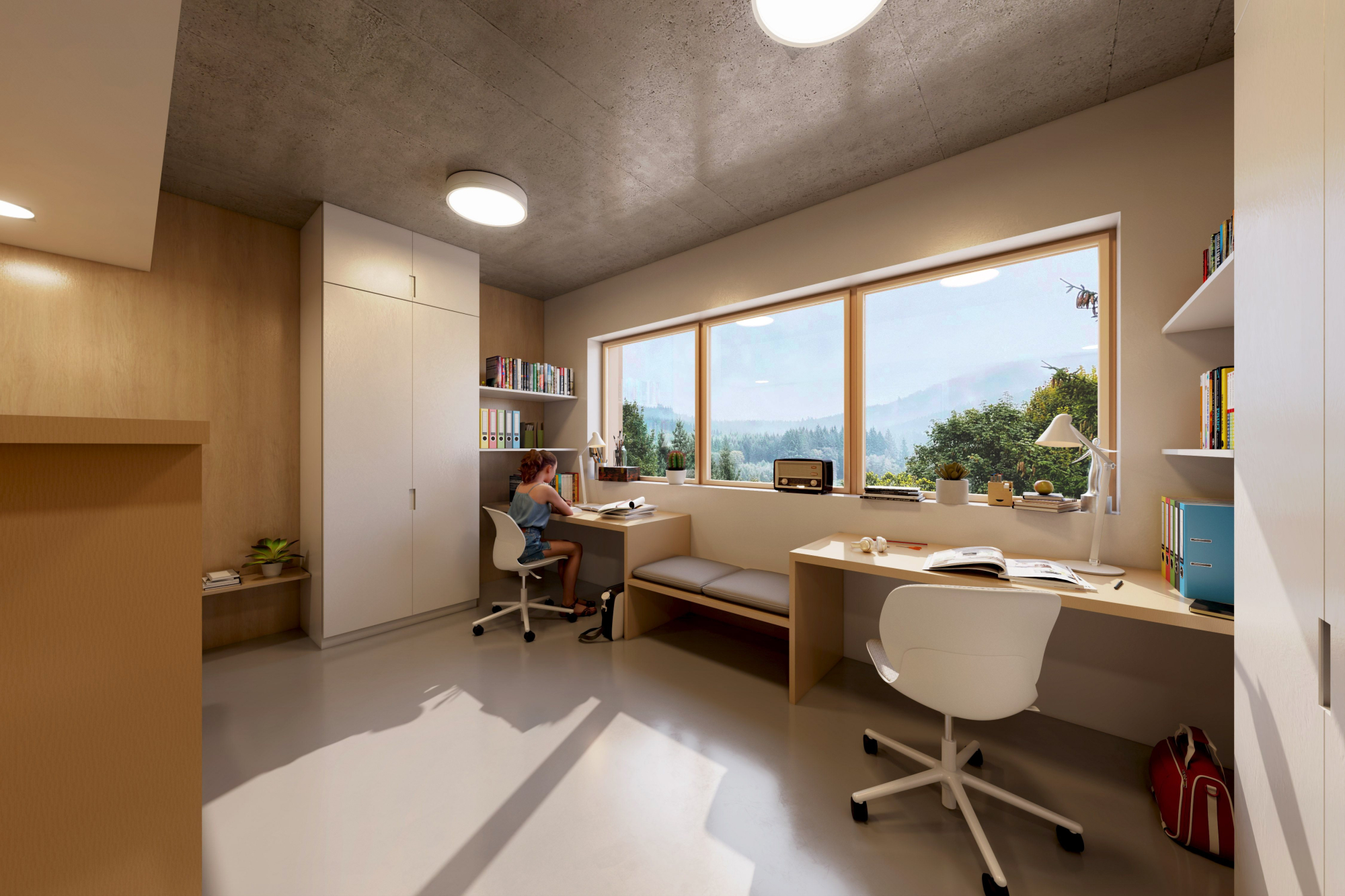 L’internat comprendra des chambres doubles, des espaces d’étude, des salles polyvalentes et une terrasse extérieure.